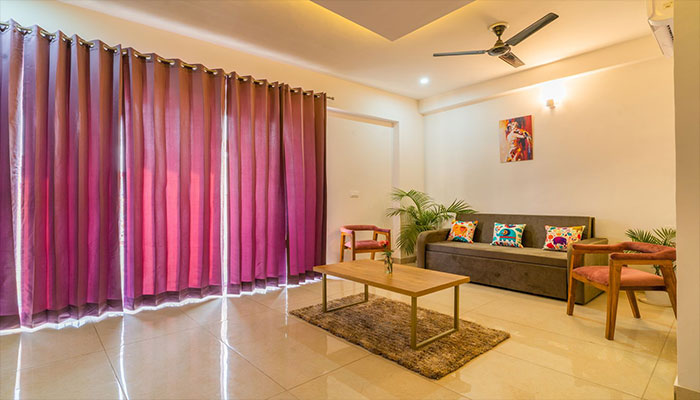 Experience the luxury of space in this 750 sq. ft. residence. Featuring a king-size master, a versatile double sofa-sleeper, and two en-suite bathrooms with premium geysers. Complete with a full kitchen and a private balcony, itâs the ultimate retreat for comfort and privacy.