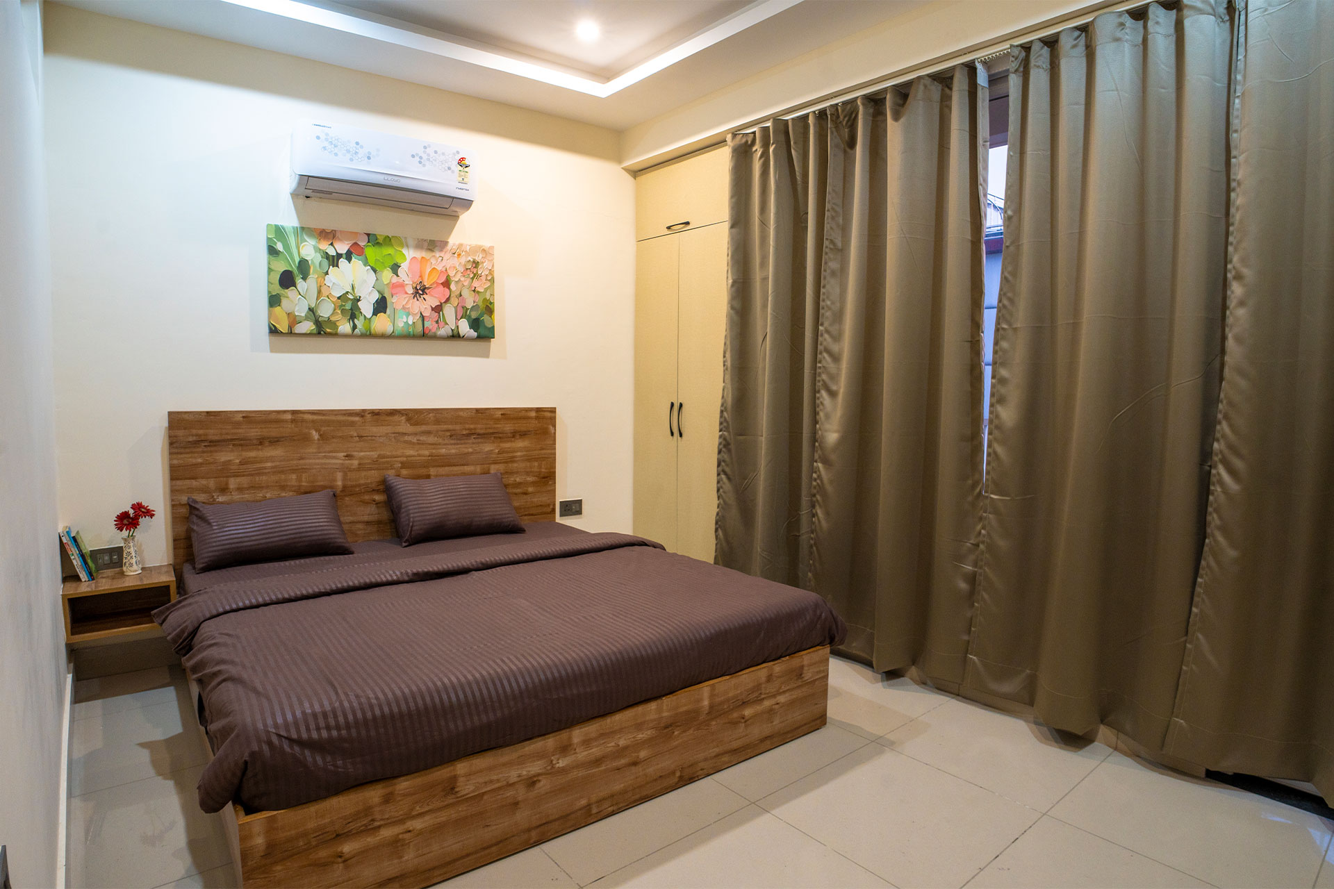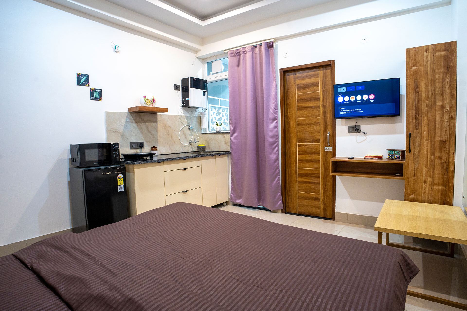"Experience the perfect blend of a luxury hotel and the warmth of home. Each unit at The Pebble House is designed for living, not just staying. Enjoy generous floor plans, dedicated work-friendly corners for professionals, and hygienic, high-end linens. With elevator access and a serene terrace just a floor away, it’s the ultimate Doon Valley base for families and long-term guests."